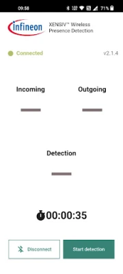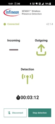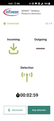 Infineon’s Wireless XENSIV™ Presence Detection demo kit works with the app to demonstrate the Infineon’s 60 GHz Radar with BLE connectivity to show presence detection and directional movement. Infineon’s BGT60LTR11AIP radar IC can detect basic motion and direction of motion without the need for sophisticated algorithms or RF design experience. The XENSIV™ Wireless Presence Detection Sensor Demo kit along with the app will enable users to evaluate a working solution to envision the possibilities of RADAR in IoT edge applications.