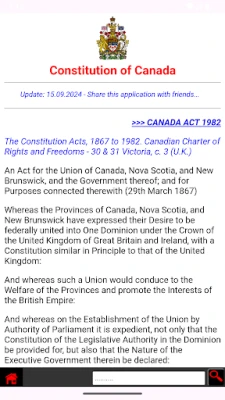 Constitution of Canada (The Constitution Acts. Canadian Charter of Rights and Freedoms) - is the supreme law of the Canada. This act defines the basic principles and laws of legislation, defines the powers and duties of citizens, and guarantees all rights.
