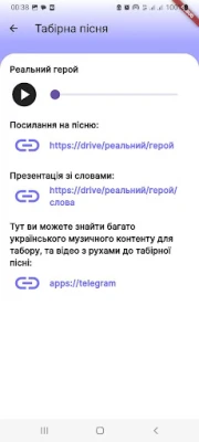 Додаток розроблений, щоб допомогти лідерам в проведенні дитячих таборів.