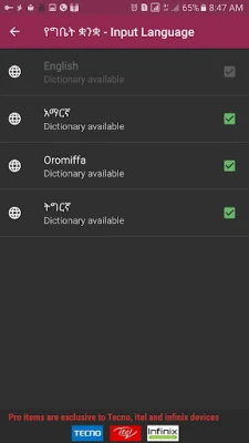Amharic Keyboard (fyn Geez), Tigrigna Keyboard, Afaan Oromoo keyboard, Ethiopian Keyboard, helps you write in Amharic, Tigrigna and Afaan Oromoo languges.