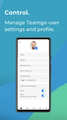 Employees can securely login to the app and manage their personal profile settings including notification types received, photo and more.