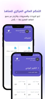 مراقبة مالية مركزية: اعرض لقطات يومية، وتفاصيل الإيرادات والمصروفات، والأموال والبنوك، وإجمالي الأرباح. تعدد المنافذ/الشركات: شاهد البيانات الخاصة فقط بالمنافذ والشركات التي تمتلك صلاحية الوصول إليها. رؤى فورية: افهم الاتجاهات بسرعة باستخدام مخططات دائريّة وعموديّة واضحة. أمان قائم على الصلاحيات: تضمن أنظمة الأمان الصارمة رؤيتك للمعلومات ذات الصلة بك فقط.