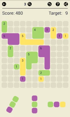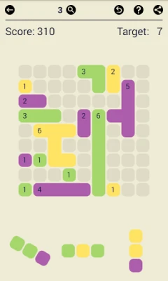 ✔ 3 game modes: select a fixed area target (7 or 9), or spice a bit the game with the challenge game mode. In the challenge one, the area target increases regularly... but surely. If you like the first game mode, you can unlock the others by watching a small rewarded video.