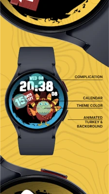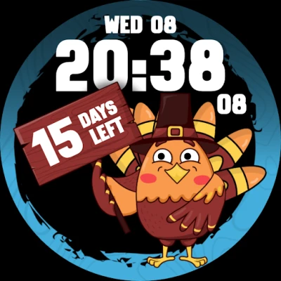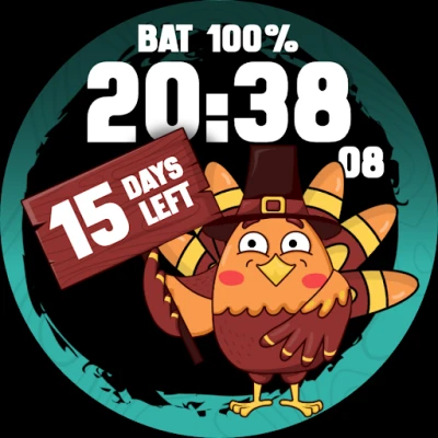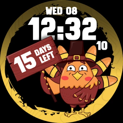 Celebrate the holiday season in style with our Thanksgiving Countdown Turkey watch face! This delightful watch face not only adds a festive touch to your wrist but also keeps you informed and entertained as you eagerly await Thanksgiving Day.